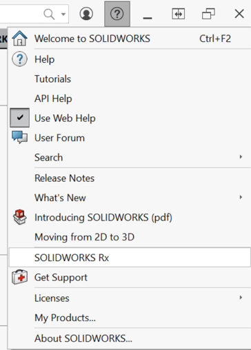 Heeft u 3DEXPERIENCE SOLIDWORKS (SOLIDWORKS connected), kunt u de RX tool alleen openen via SOLIDWORKS.