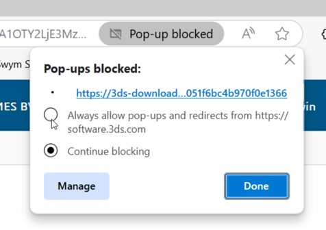 Note : Download will start automatically from the 3DS Software download webpage so please check your download history. In case the download is not retrieved, check your settings to make sure that pop-ups and redirects are allowed from 3DS Software download webpage.